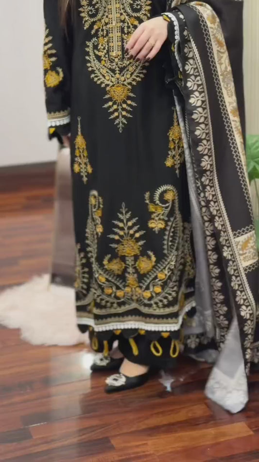 PREMIUM QUALITY 3-PIECE STITCHED LONG LENGTH EMBROIDERED DRESS