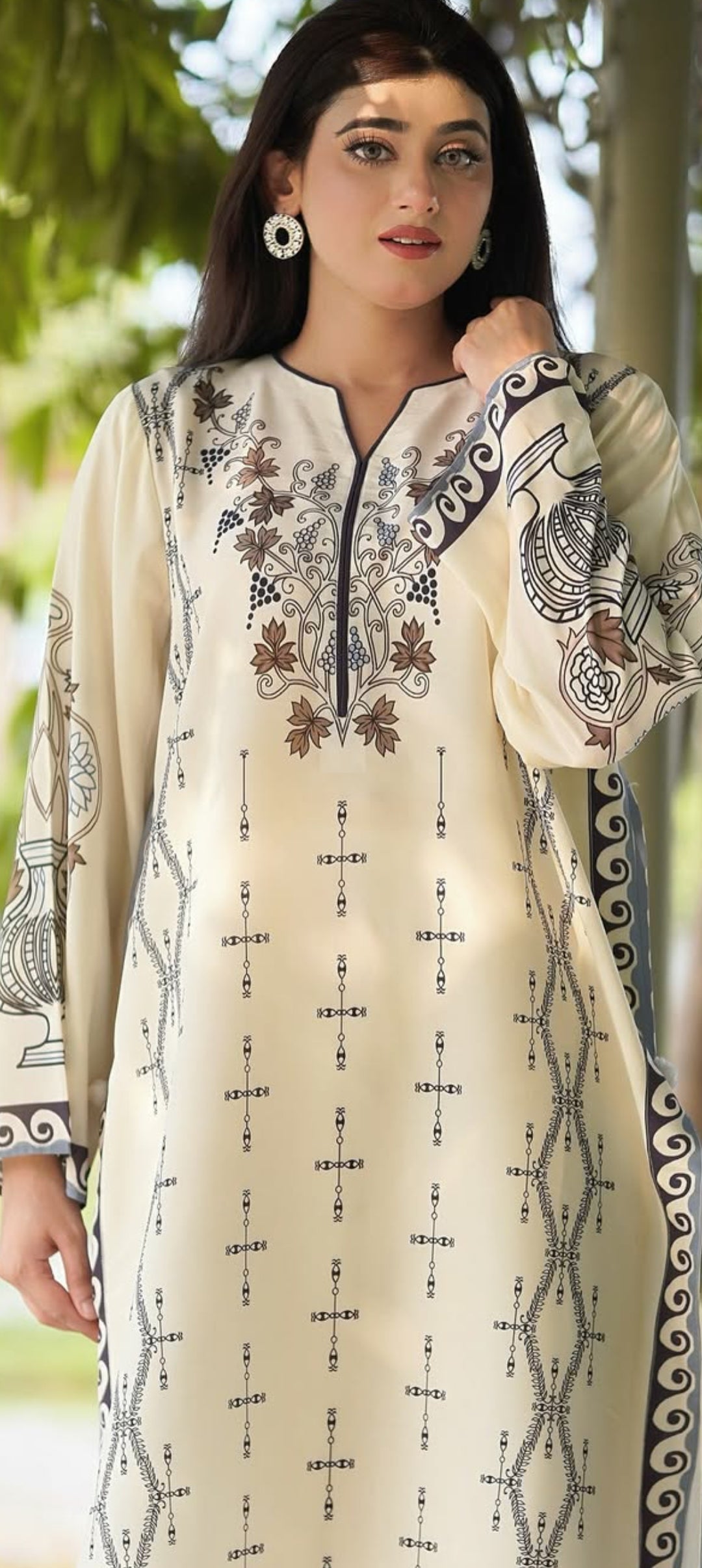 This 2-piece stitched long length dress features a flowing silhouette with elegant detailing for a timeless look. Ideal for both casual outings and special occasions.